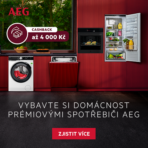 Od 9. 2. 2026 do 16. 4. 2026 probíhá cashback akce AEG, ve které můžete získat 1 500 Kč, 2 000 Kč, 2 500 Kč, 3 000 Kč nebo až 4 000 Kč zpět na vybrané spotřebiče. Akce se vztahuje na vybrané modely kategorií, jako jsou chladničky, varné desky, trouby, myčky, pračky a sušičky (pro seznam spotřebičů a výši cashbacku klikněte na "akční leták" dole).